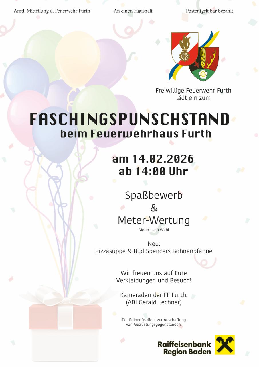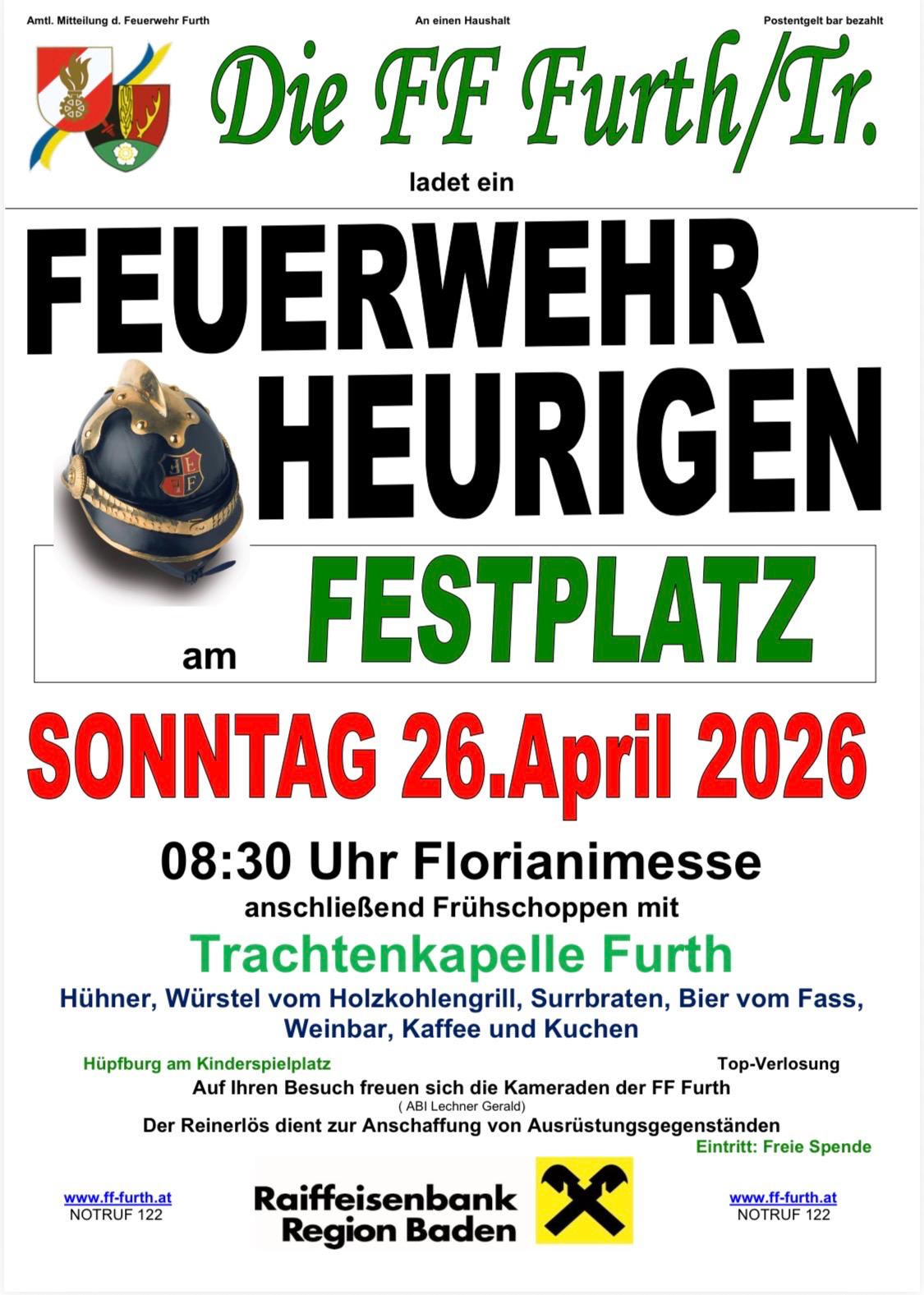 | Wir werden unterstützt von | Falls Sie die Feuerwehr Furth/Triesting unterstützen möchten, so bitten wir um eine Spende – egal ob groß oder klein – auf folgende Bankverbindung. Danke! |