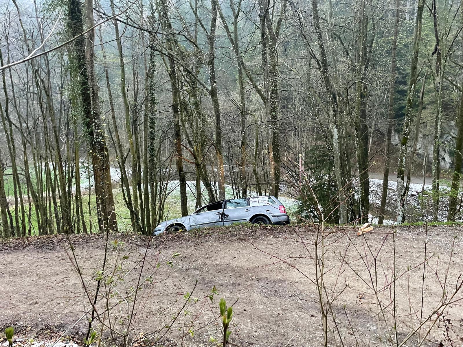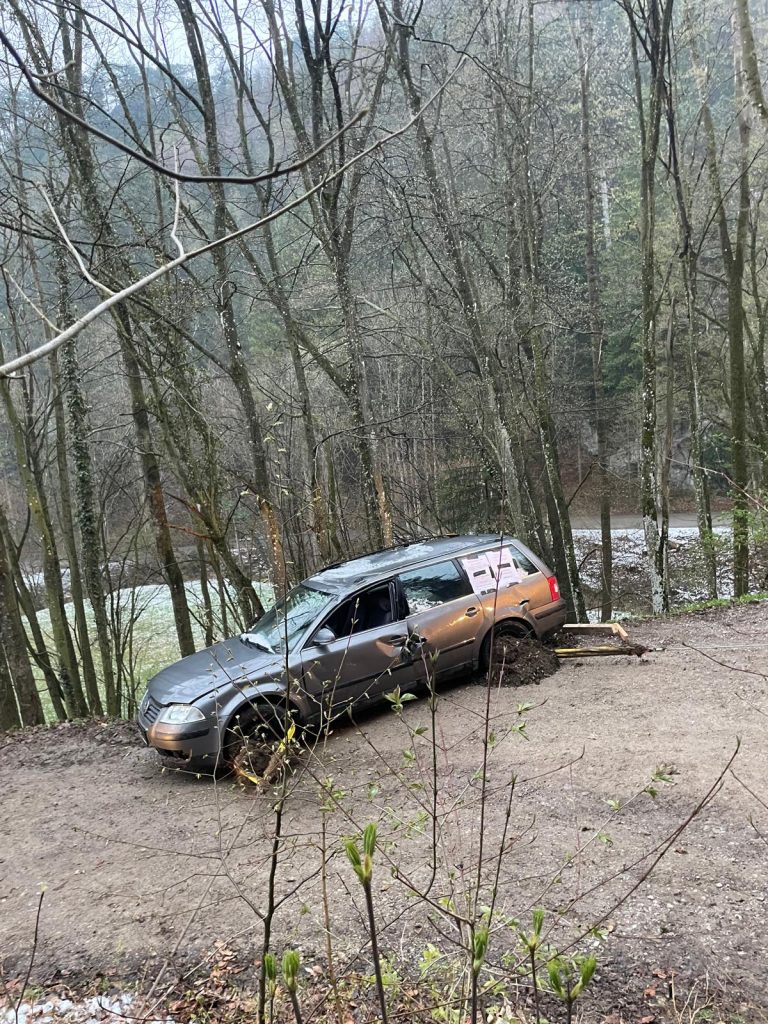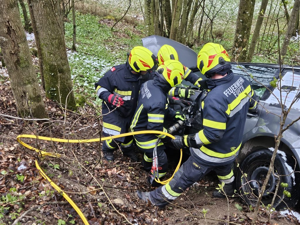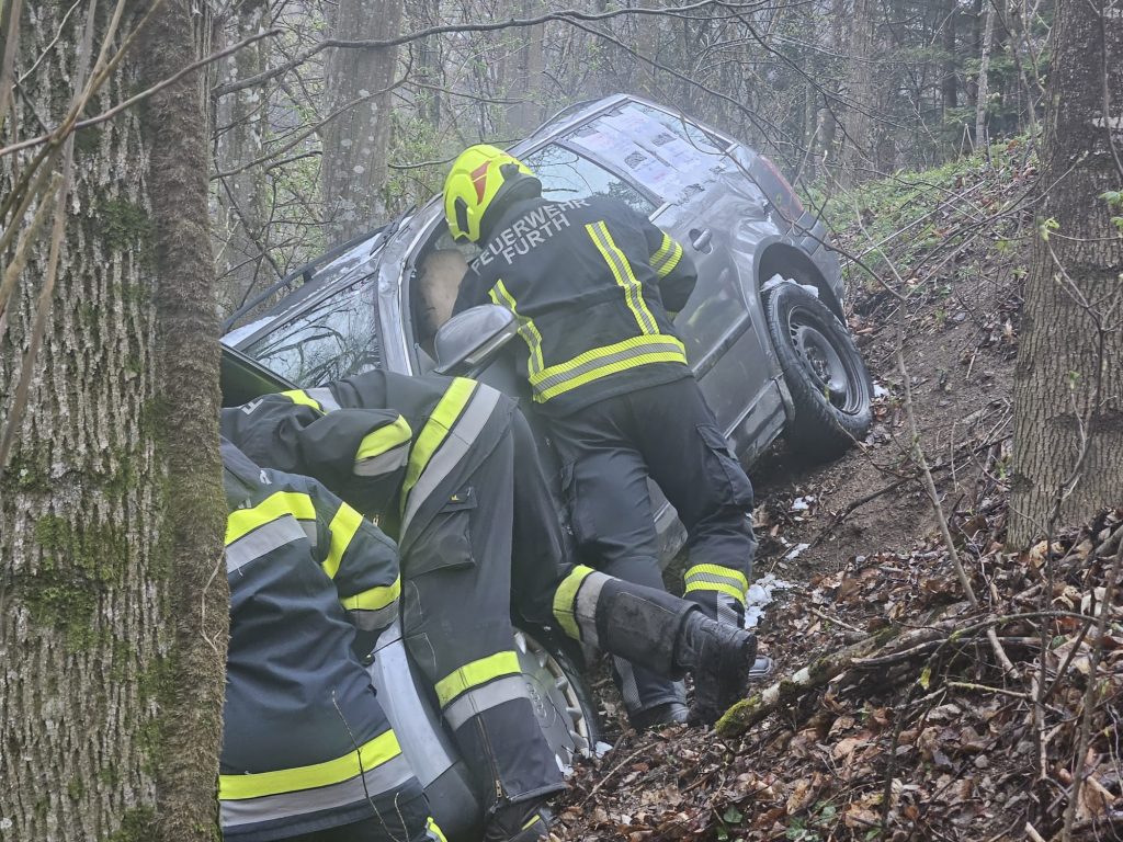 T2 – PKW vom Weg abgekommen, eine eingeklemmte Person.