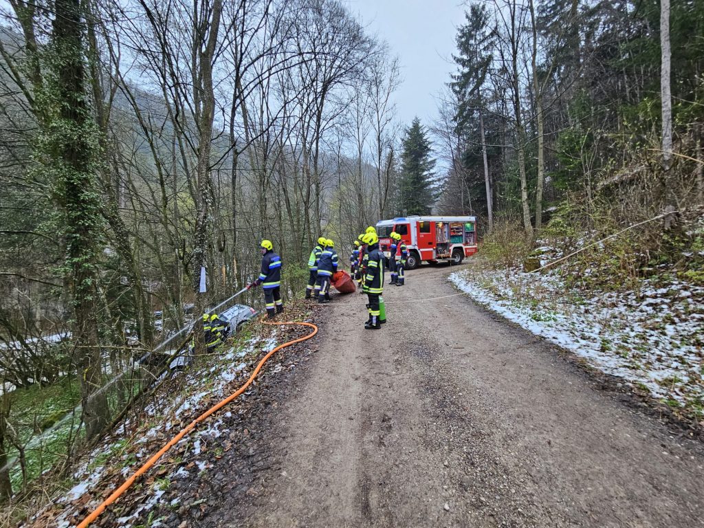 Nach dem Einschätzen des Unfallortes wurde jene gesichert, um anschließend die Person aus dem Wagen zu retten. Mit Hilfe des Hydraulischen Rettungsset und der Rettungstrage, verbunden mit einem Seilzug, gelang jenes sehr zügig. Daraufhin wurde der PKW mit der Seilwinde geborgen und die Einsatzstelle wieder aufgeräumt.